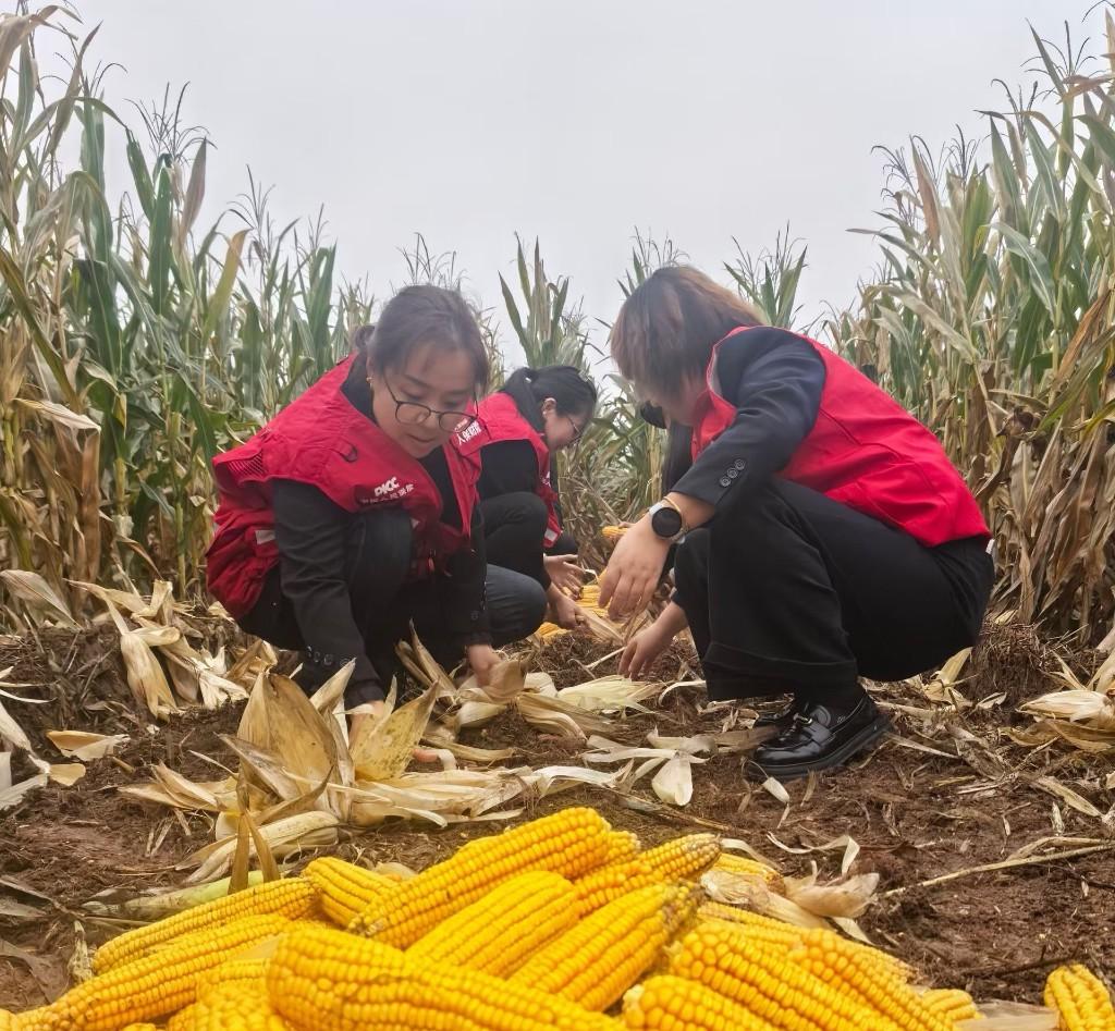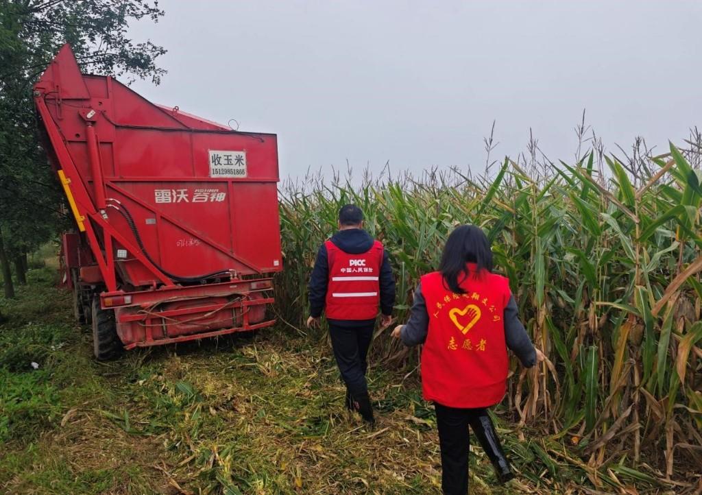 人保財(cái)險(xiǎn)陜西分公司助農(nóng)搶收小分隊(duì)在協(xié)助農(nóng)戶搶收玉米