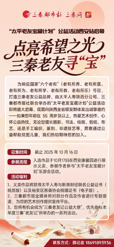 “太平老友寶藏計(jì)劃”自6月5日在上海啟幕以來,已先后在上海、成都、武漢、昆明、杭州、濟(jì)南、無錫和廣州開展8場重點(diǎn)場活動,吉林、河北、江西、遼寧和北京5家太平人壽分公司開展多場屬地化活動。此次“太平老友寶藏計(jì)劃”西安站活動的成功舉辦,為銀發(fā)一族提供了一個展示自我、奉獻(xiàn)愛心的平臺,也進(jìn)一步傳播了太平人壽品牌的公益形象,構(gòu)建了“銀發(fā)公益+兒童幫扶”的良性互動生態(tài) 。未來,太平人壽將繼續(xù)攜手各方,打造更多豐富多彩的公益品牌項(xiàng)目,讓更多的銀發(fā)長者能夠在發(fā)揮才藝、傳遞溫暖的過程中,收獲成就感與幸福感 。