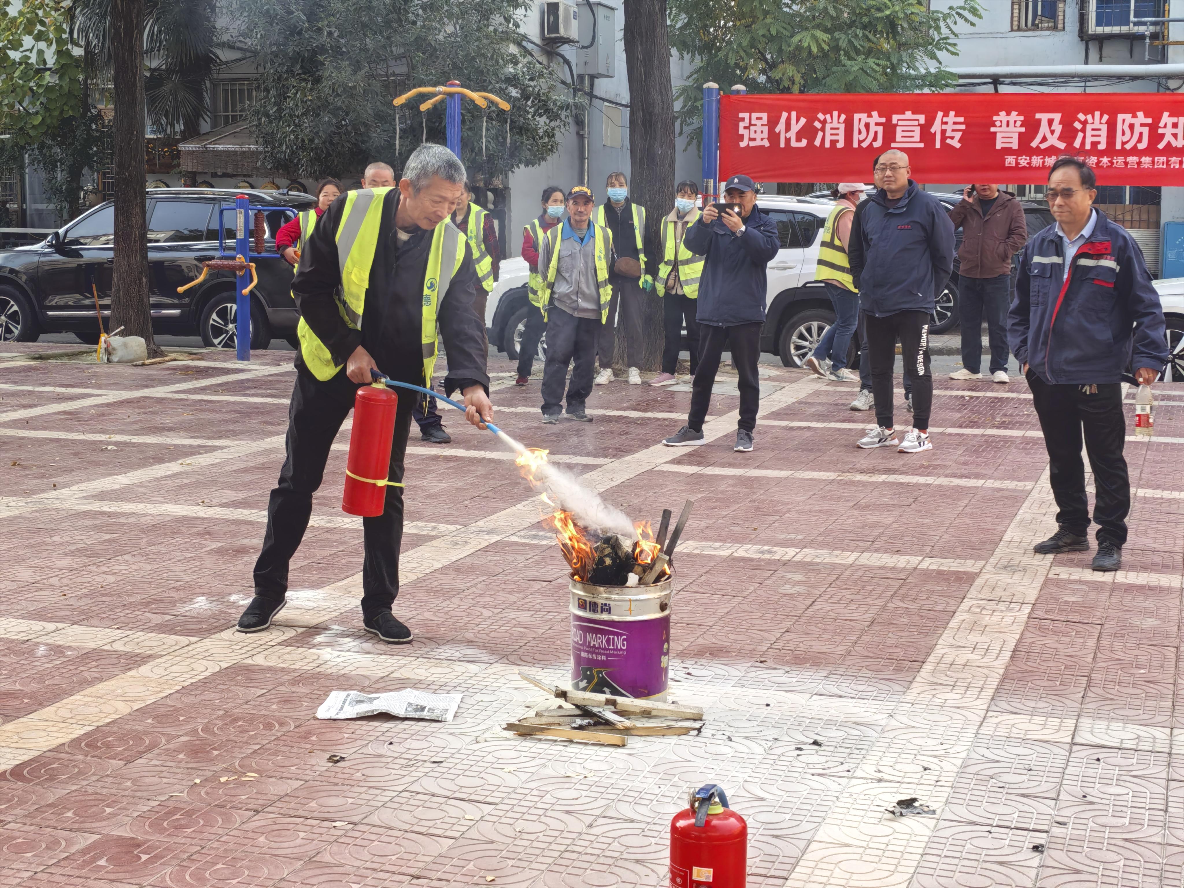 三秦都市報(bào)-三秦網(wǎng)訊(溫萍 記者 文晨)提、拔、握、壓……11月4日上午,西安市新城區(qū)長(zhǎng)樂(lè)中路街道昆侖社區(qū)36小區(qū)小廣場(chǎng)前,居民們?cè)趯I(yè)人員的指導(dǎo)下,學(xué)習(xí)使用干粉滅火器,成功撲滅模擬火源。