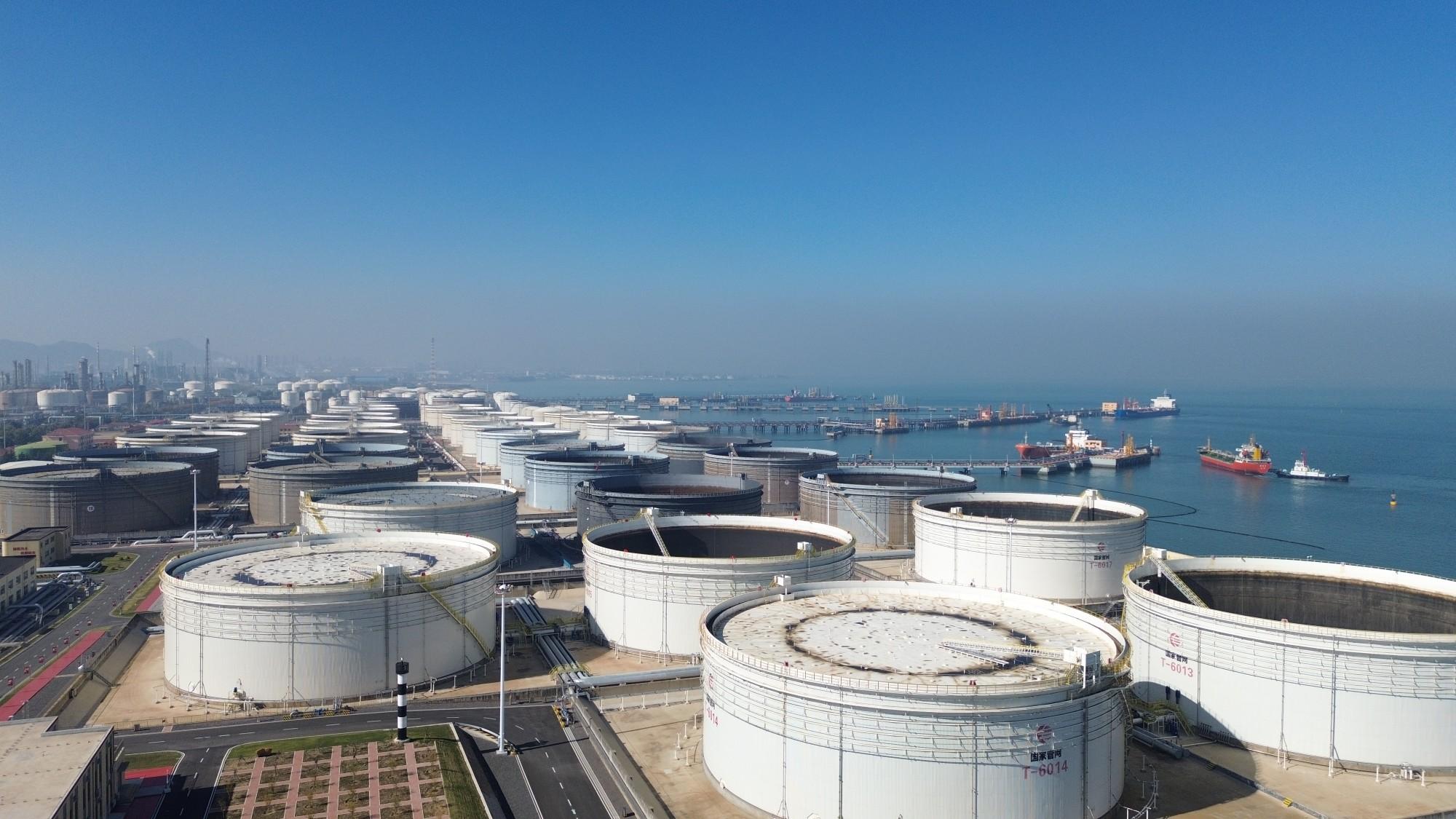 黃島油庫(kù)俯瞰。人民網(wǎng)記者 王天樂(lè)攝