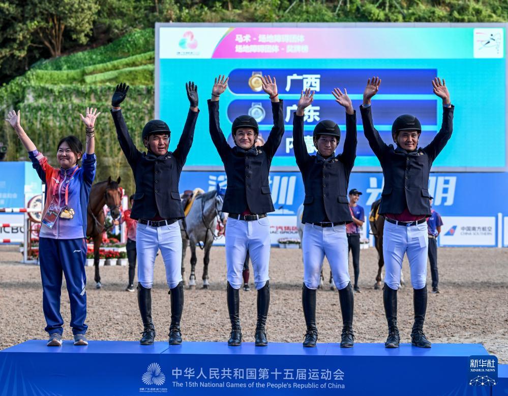 當(dāng)日,第十五屆全國運(yùn)動(dòng)會(huì)馬術(shù)場地障礙團(tuán)體賽在廣東深圳舉行。廣西隊(duì)獲得冠軍,廣東隊(duì)獲得亞軍,內(nèi)蒙古隊(duì)獲得季軍。