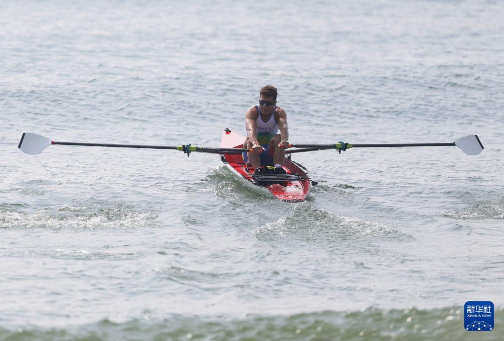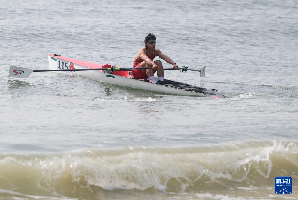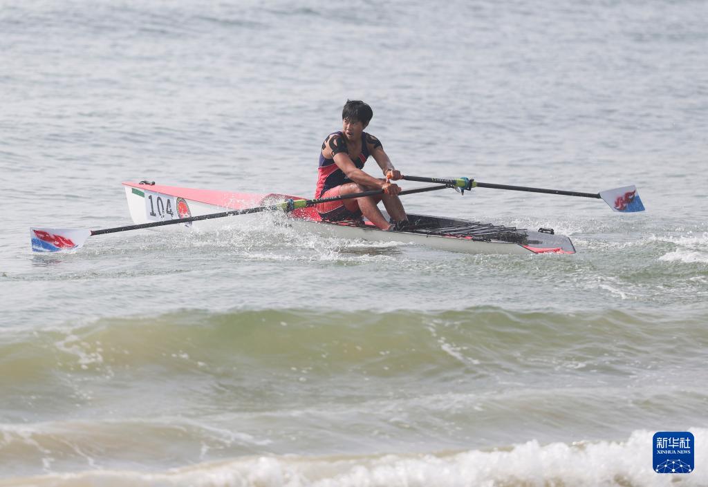 當(dāng)日,第十五屆全國運(yùn)動(dòng)會(huì)海岸賽艇男子單人雙槳半決賽在廣東陽江舉行。