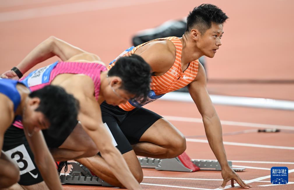 11月17日,廣東隊(duì)選手陳冠鋒在比賽前準(zhǔn)備起跑。最終,他晉級(jí)決賽。