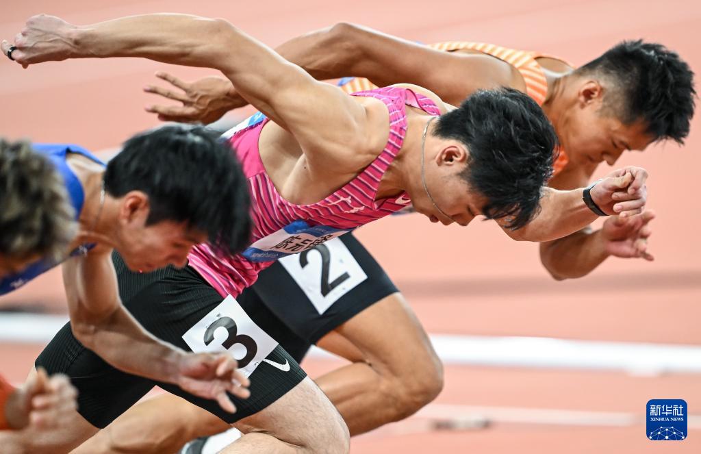 11月17日,廣西隊(duì)選手鄧信銳(右)在比賽中起跑。最終,他晉級(jí)決賽。