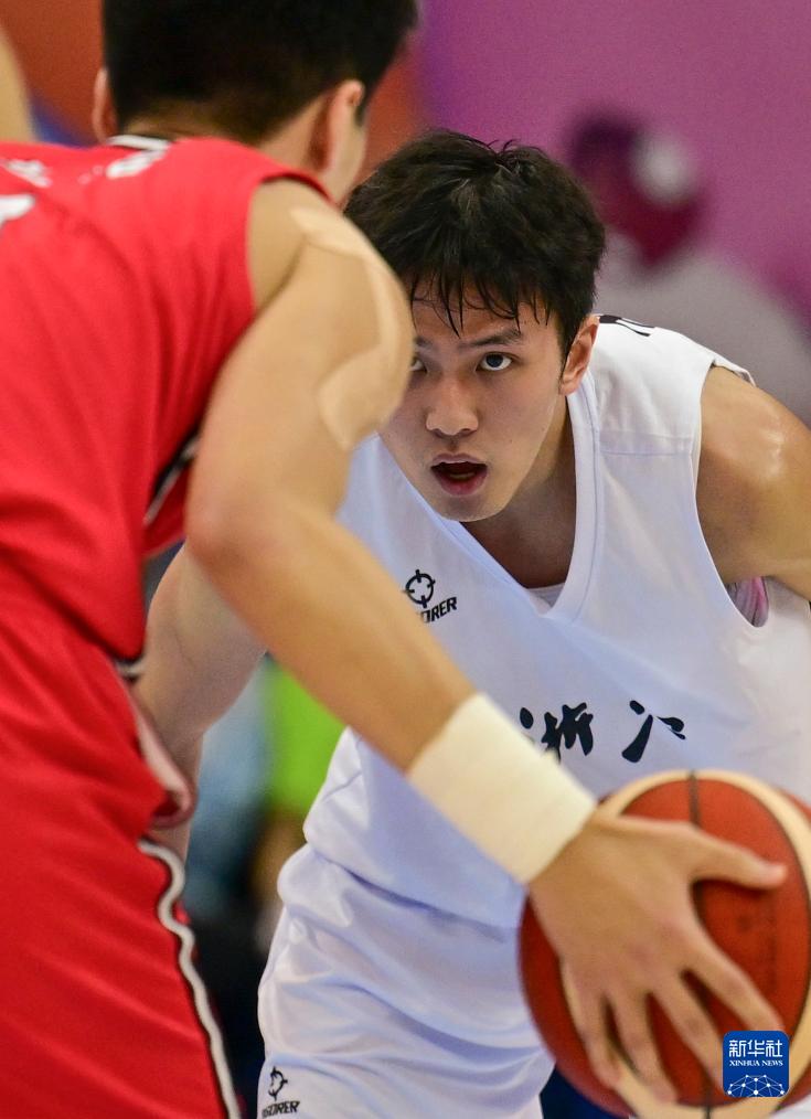 11月17日,浙江隊(duì)球員續(xù)峻瑋(右)在比賽中防守。