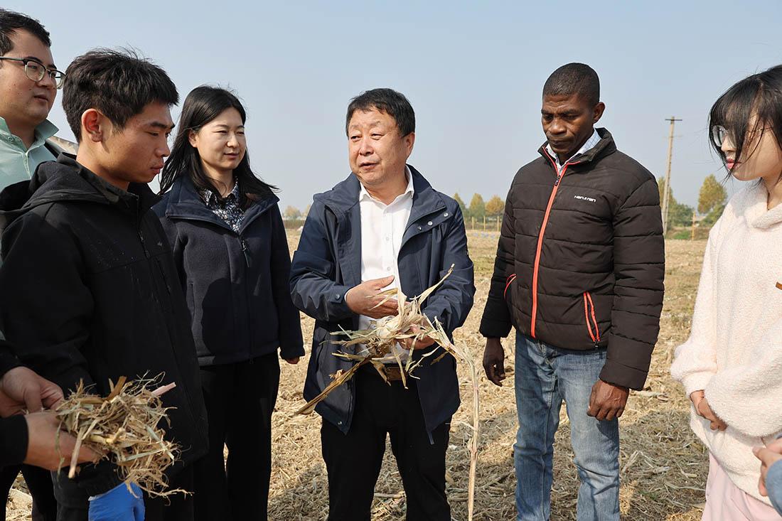 11月13日上午,田埂邊,非洲留學(xué)生雷納多正蹲下身,小心翼翼捧著剛采集的土樣,褐色泥土沾在指尖,他卻毫不在意,眼神專注地捻碎土粒,感受著土壤的濕度與質(zhì)感?!拔抑饕芯慷嗄贻喿鞣N植制度對(duì)土壤微生物和土壤碳平衡的影響?!?他用略帶口音卻格外清晰的中文說道。指尖的土壤在他眼中,藏著破解家鄉(xiāng)農(nóng)業(yè)發(fā)展難題的密鑰,“這里從播種到收獲的全流程技術(shù),正是非洲農(nóng)業(yè)最需要的經(jīng)驗(yàn)?!?不遠(yuǎn)處,負(fù)責(zé)人海江波教授蹲在采樣框旁,指著框上的標(biāo)記耐心講解:“不同輪作種植模式下,土壤微生物群落差異極大,而且土壤碳庫(kù)特征不同,這把土就是農(nóng)田地力水平的‘密碼本’?!?雷納多聽罷,迅速將貼好標(biāo)簽的土樣裝入保溫箱,眼中閃爍著解開科學(xué)謎題的期待。平日里,他常和中國(guó)同學(xué)組隊(duì)下田,遇到難題便一起翻資料、做試驗(yàn),泥土的芬芳中,不同膚色的年輕人結(jié)下了跨越國(guó)界的深厚友誼。