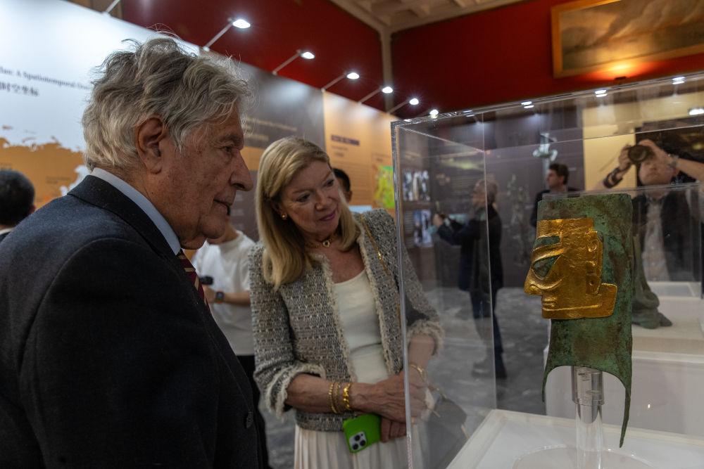 2025年5月13日,觀眾在希臘雅典新斯米爾尼市政博物館參觀“青銅之光——古蜀文明特展”。展覽通過(guò)精美的文物復(fù)制品、3D打印技術(shù)和圖文展示,生動(dòng)呈現(xiàn)以三星堆—金沙遺址為代表的古蜀文明,吸引眾多當(dāng)?shù)孛癖娗皝?lái)參觀。