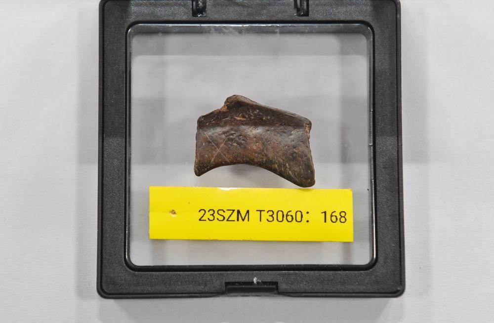 2023年12月5日拍攝的從四川資陽(yáng)濛溪河遺址群出土的有X形劃痕的骨器。該遺址是國(guó)際罕見(jiàn)的同時(shí)包含豐富石器、動(dòng)物與植物遺存的“全科型”遺址,入選了“2024年度全國(guó)十大考古新發(fā)現(xiàn)”。