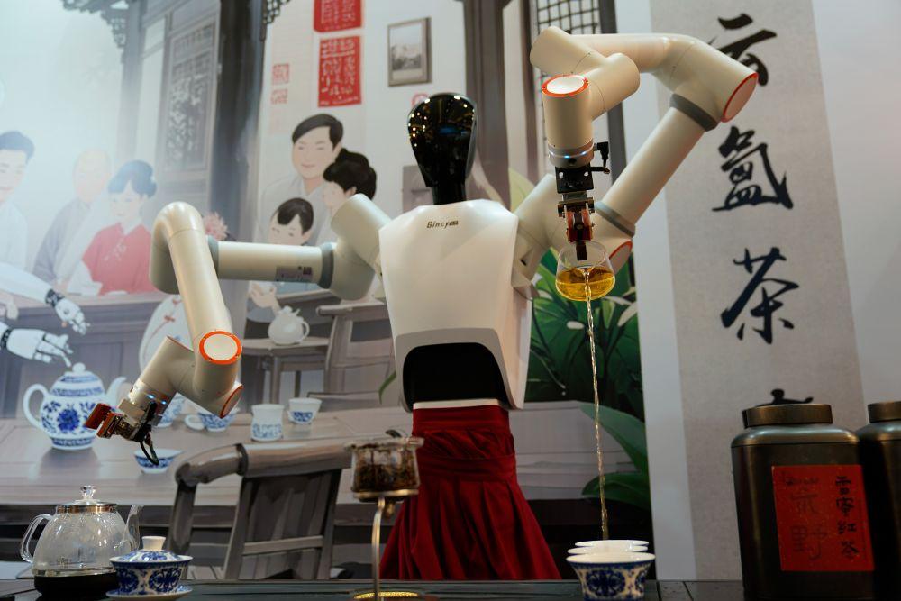 2025年5月31日,在第九屆中國(guó)成都國(guó)際非物質(zhì)文化遺產(chǎn)節(jié)上,機(jī)器人茶藝師表演茶藝。5月28日至6月3日,第九屆中國(guó)成都國(guó)際非物質(zhì)文化遺產(chǎn)節(jié)在四川成都舉行。