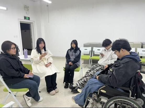 圍繞“助殘服務(wù)”這一貼近生活的主題,小組成員共同構(gòu)思劇本、分配角色、反復(fù)排練。殘障朋友在志愿者協(xié)助下,扮演起不同社會角色——有輪椅上的畫者,也有用“心眼看世界”的志愿者。這些源于生活又充滿想象力的情節(jié),生動展現(xiàn)了殘障群體豐富的內(nèi)心世界與積極樂觀的生活態(tài)度。