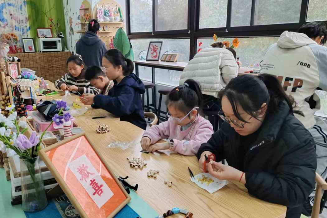 工作人員從果殼的清洗晾曬、創(chuàng)意涂色,到彩繩的纏繞固定、部件的組合搭配,向大家細(xì)致講解了風(fēng)鈴制作步驟,小朋友們聽得專注、看得投入,早已按捺不住動(dòng)手嘗試的熱情。手工坊里滿是歡聲笑語,大家一邊創(chuàng)作一邊交流技巧,鄰里間的距離,也在這指尖的默契互動(dòng)中悄然拉近。