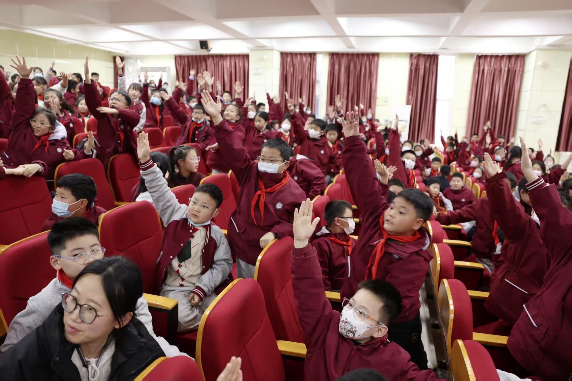 “南極有什么動物,我們請臺上的同學(xué)模仿表演一下,大家一起猜好不好?”活動現(xiàn)場,《岡特生態(tài)童書》編委之一、生態(tài)環(huán)境部宣傳教育中心靳增江老師通過互動小游戲瞬間點(diǎn)燃了大家的熱情,孩子們紛紛舉手搶答。