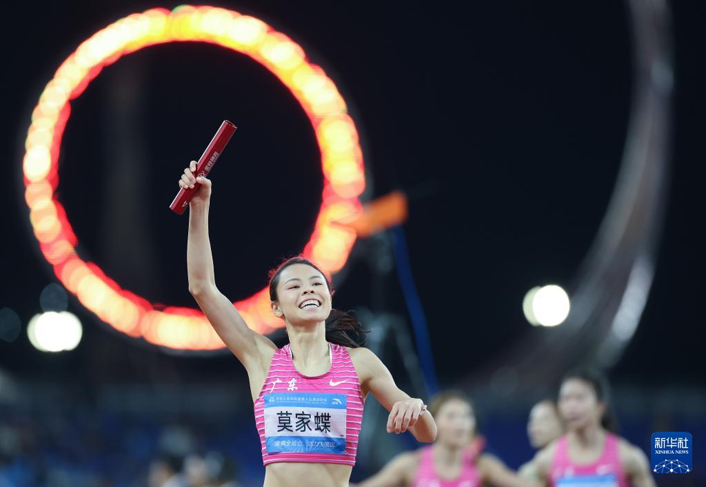 當(dāng)日,第十五屆全國運動會田徑女子4X100米接力決賽在廣州舉行。