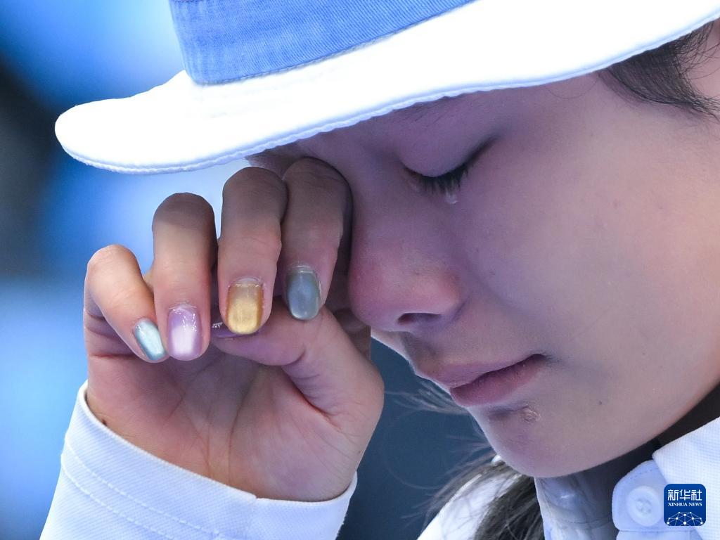 11月20日,廣西隊選手韋方瑤在比賽后落淚。