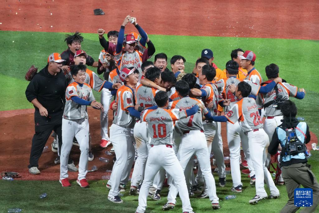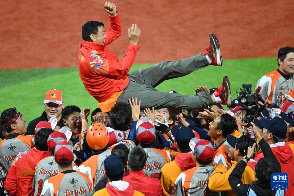 11月20日,江蘇隊成員在比賽后慶祝奪冠。