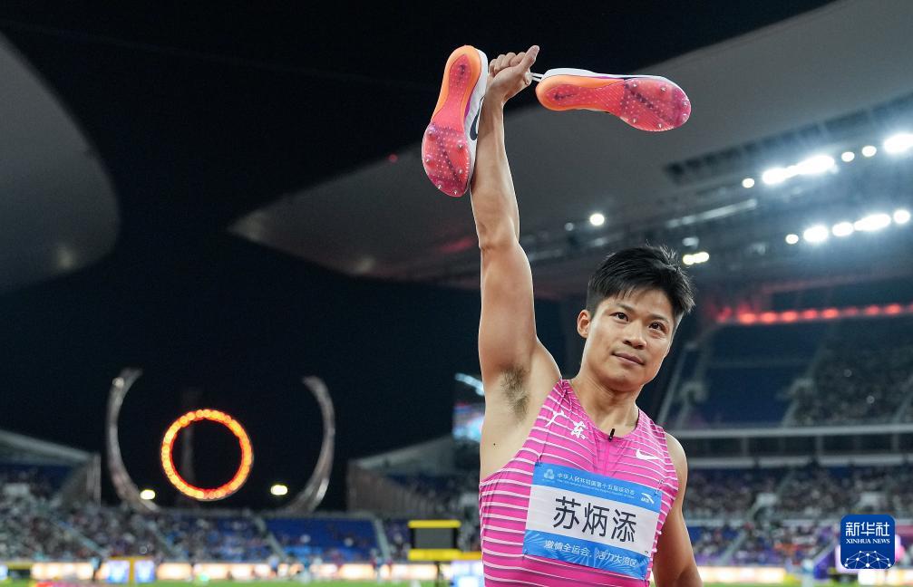 當(dāng)日,第十五屆全國運動會田徑項目男子4X100米接力決賽在廣州舉行。
