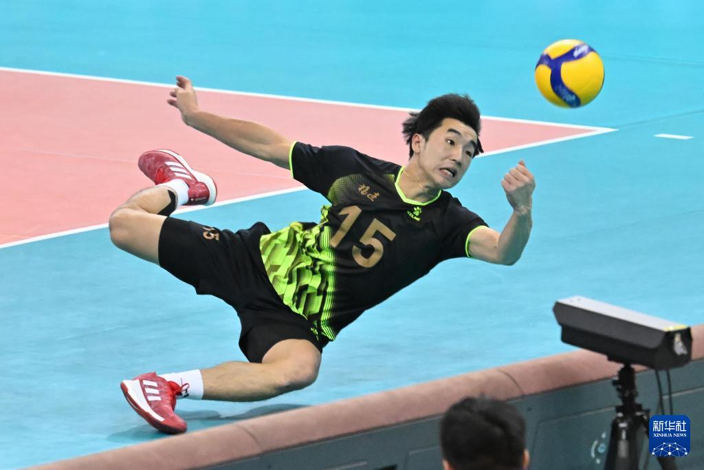 當(dāng)日,在廣東江門舉行的第十五屆全國運動會排球男子成年組冠亞軍決賽中,福建隊對陣山東隊。