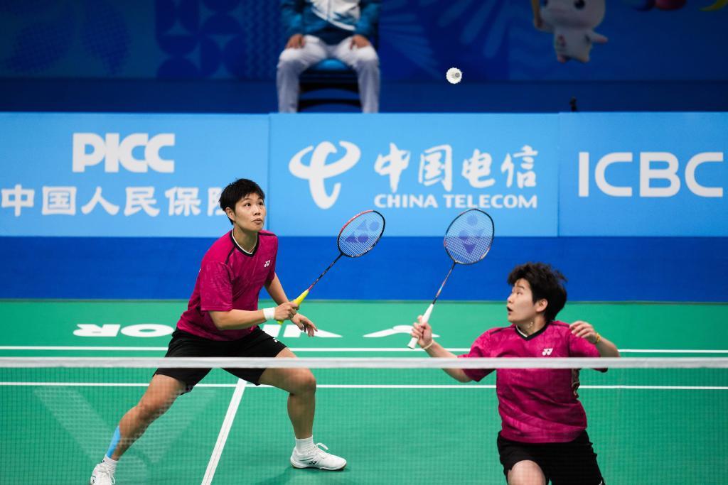 11月20日,福建隊組合黃東萍(左)/譚寧在比賽中。新華社記者 陳思汗 攝