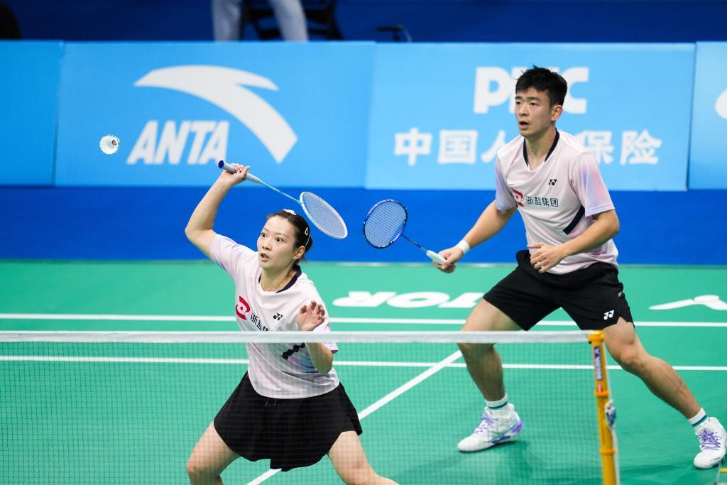 11月20日,浙江隊組合鄭思維/黃雅瓊(左)在比賽中。新華社記者 陳思汗 攝