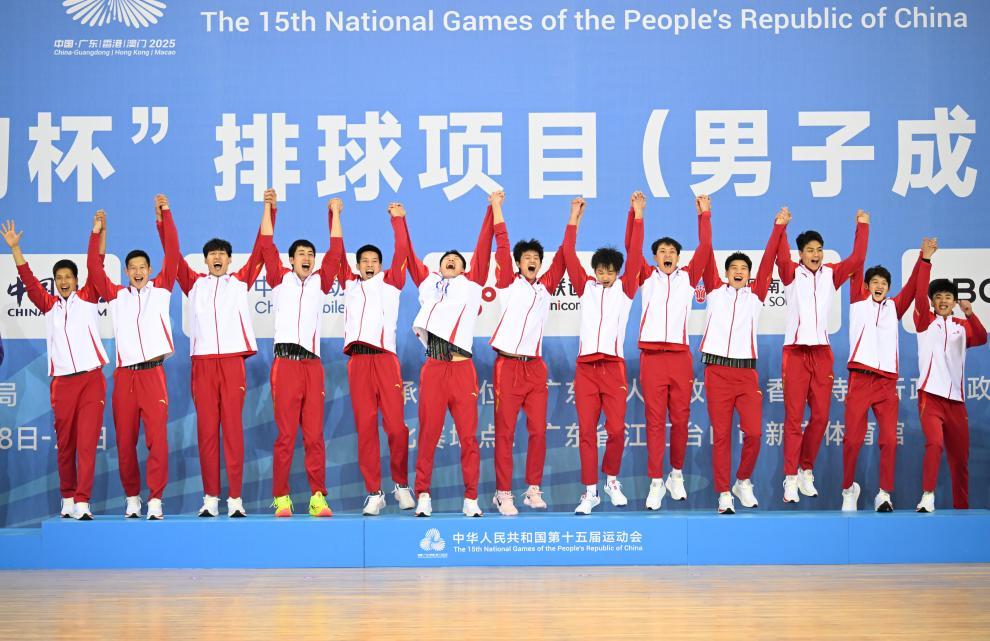 第十五屆全運會排球男子成年組決賽20日在廣東江門臺山新寧體育館打響。山東隊3:0輕取福建隊奪冠,銅牌被上海隊收入囊中。