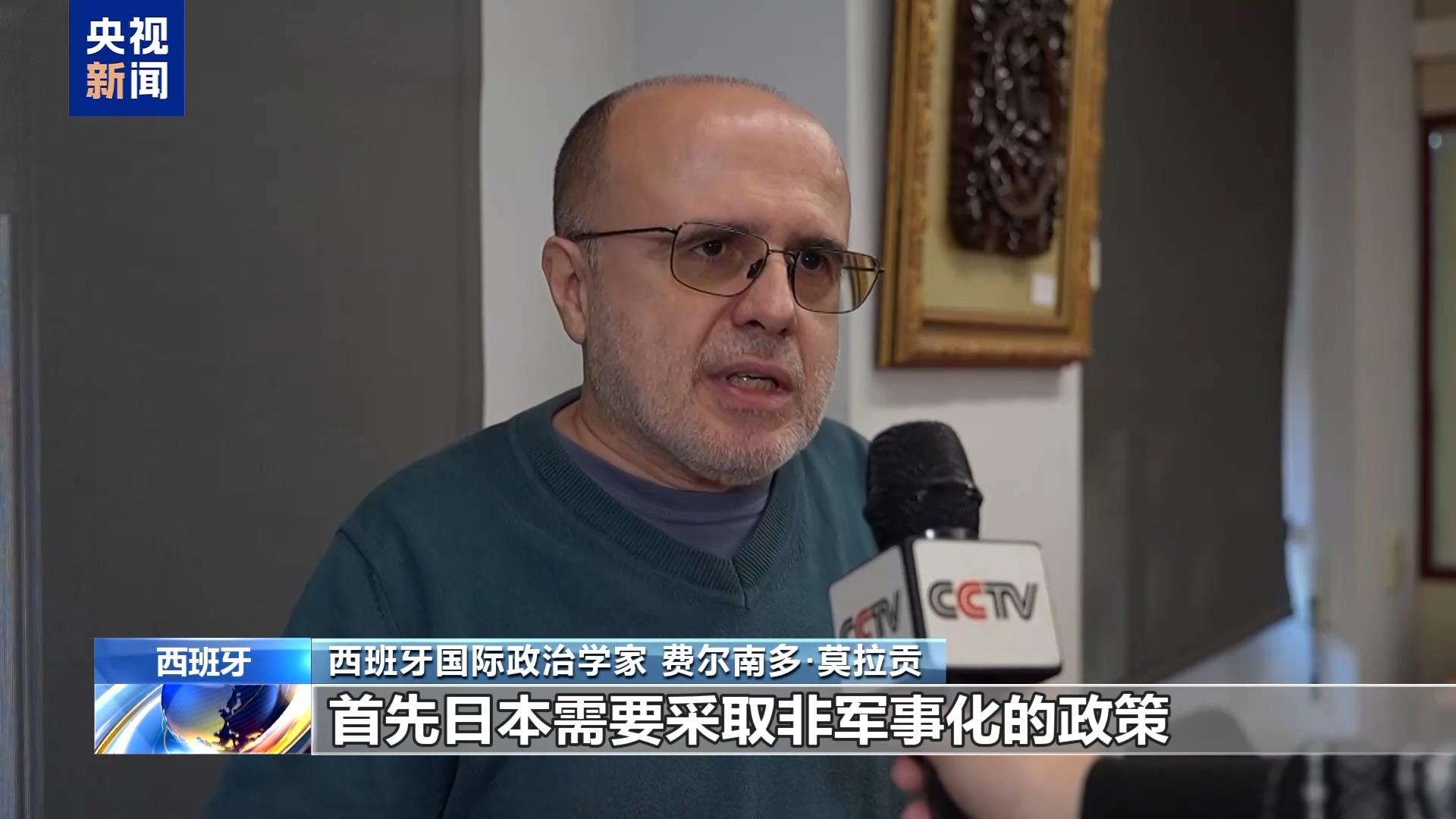 西班牙國(guó)際政治學(xué)家 費(fèi)爾南多·莫拉貢:首先日本需要采取非軍事化的政策,也就是說(shuō),需要維持對(duì)外的友好往來(lái)。因?yàn)檫@也符合日本的根本利益,日本需要將中國(guó)視作重要貿(mào)易伙伴,同時(shí)也要和韓國(guó)和東南亞各國(guó)維持和平往來(lái),不再重復(fù)歷史上犯過(guò)的錯(cuò)誤。