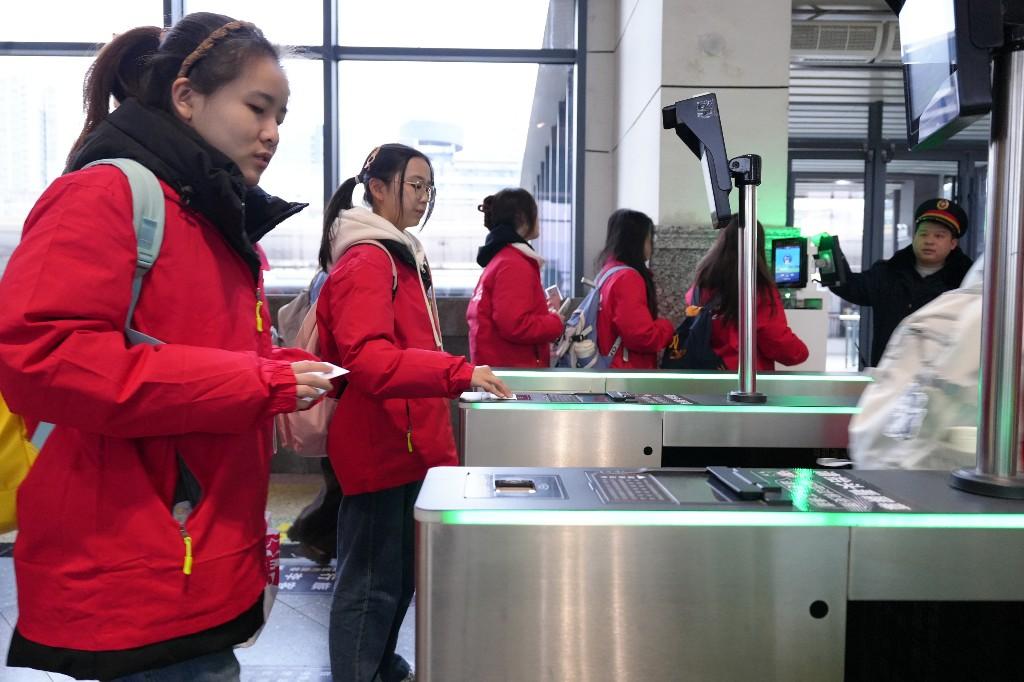 寶雞車(chē)站采取“提前預(yù)檢”方式,在專(zhuān)用候車(chē)區(qū)提前完成檢票,縮短等候時(shí)間。列車(chē)開(kāi)檢后,現(xiàn)場(chǎng)工作人員按“車(chē)廂對(duì)號(hào)”進(jìn)行引導(dǎo),根據(jù)列車(chē)編組和車(chē)廂號(hào),規(guī)劃最優(yōu)上車(chē)路線,專(zhuān)人帶隊(duì),確保700名師生快速、準(zhǔn)確登乘。往返途中,虢鎮(zhèn)站同時(shí)辦理團(tuán)體旅客上下,兩站協(xié)同組織,全程順暢銜接。