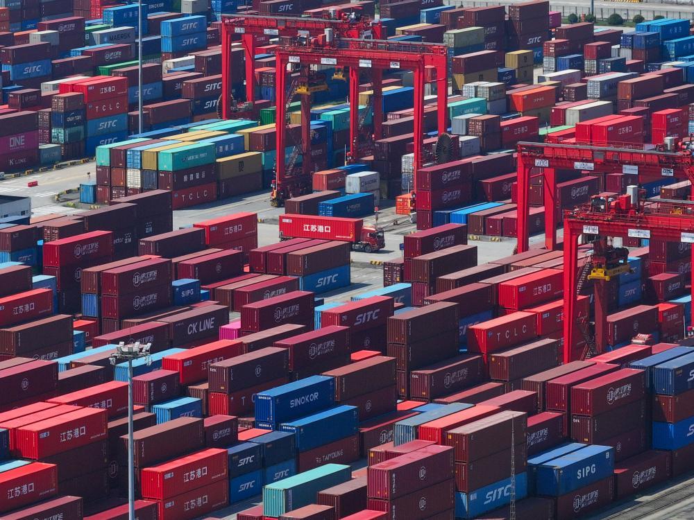 這是2025年9月16日拍攝的江蘇太倉港集裝箱堆場(無人機(jī)照片)。新華社記者 郭潔宇 攝
