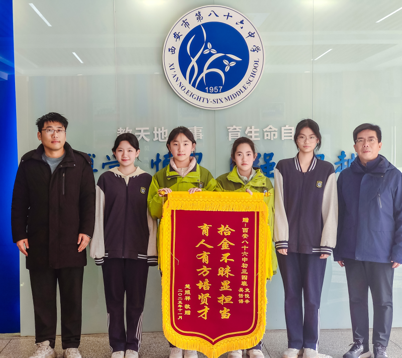 失主為表謝意,特送錦旗“拾金不昧顯擔(dān)當(dāng),育人有方培賢才”。四位同學(xué)的行為充分彰顯了學(xué)校學(xué)子高尚的道德情操與良好的精神風(fēng)貌,是學(xué)校全面落實(shí)育人目標(biāo)、提升學(xué)生綜合素養(yǎng)的生動(dòng)體現(xiàn)。