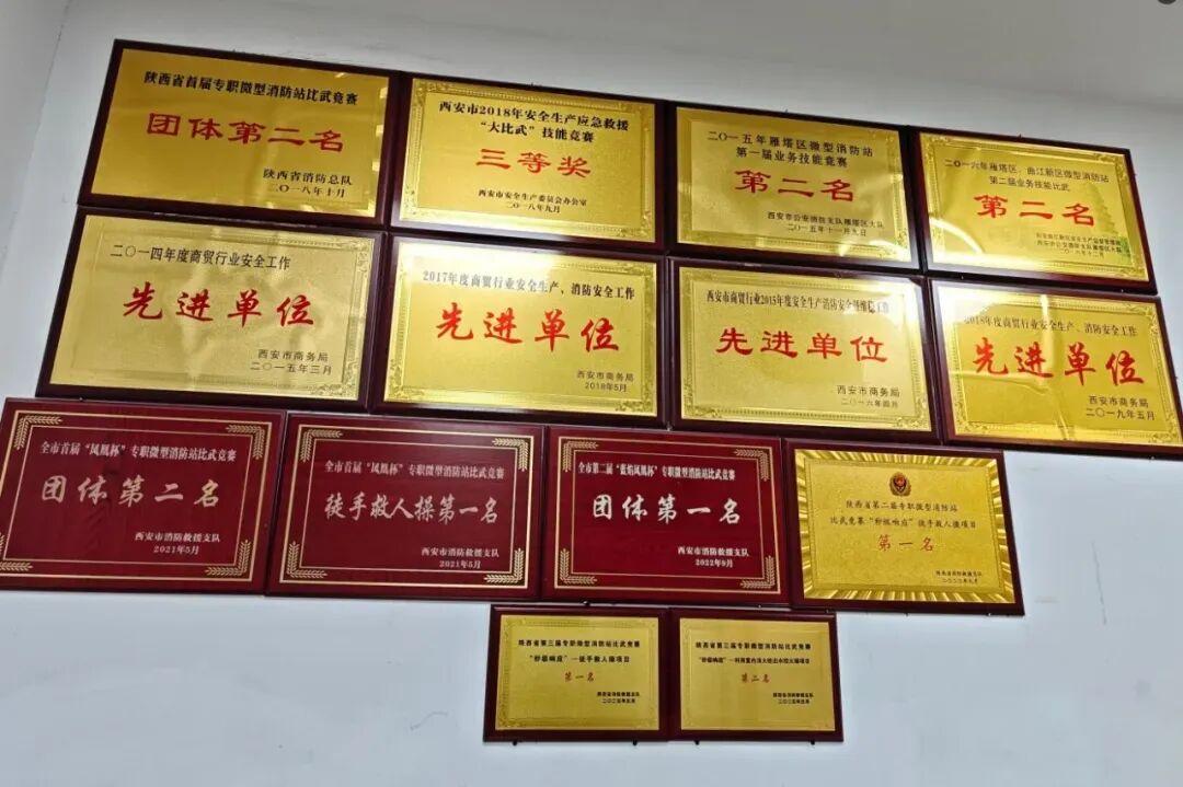 該站在2015年榮獲雁塔區(qū)微型消防站第一屆業(yè)務(wù)技能競(jìng)賽第2名、2016年榮獲雁塔區(qū)、曲江新區(qū)微型消防站第二屆業(yè)務(wù)技能比武第2名、2017年7月小寨軍區(qū)服務(wù)社發(fā)生火災(zāi),曾奔赴現(xiàn)場(chǎng)滅火救援,受到了省、市各級(jí)領(lǐng)導(dǎo)的一致好評(píng),2018年榮獲陜西省首屆專職微型消防站比武競(jìng)賽團(tuán)體第2名、西安市2018年安全生產(chǎn)應(yīng)急救援“大比武”技能競(jìng)賽三等獎(jiǎng),2022年西安市第二屆“藍(lán)焰鳳凰杯”專職微型消防站業(yè)務(wù)技能比武競(jìng)賽活動(dòng)團(tuán)體第一名,2023年度陜西省第二屆專職微型消防站比武競(jìng)賽“秒級(jí)響應(yīng)”獨(dú)手人操項(xiàng)目第一名,原地著裝第一名,2025年陜西省第三屆專職微型消防站比武競(jìng)賽“秒級(jí)響應(yīng)”一徒手救人操項(xiàng)目第一名、“秒級(jí)響應(yīng)”利用室內(nèi)消火栓出水控火操項(xiàng)目第二名。連續(xù)三年參加省市“鳳凰杯”、微型消防站比武大賽均取得優(yōu)異成績(jī)。