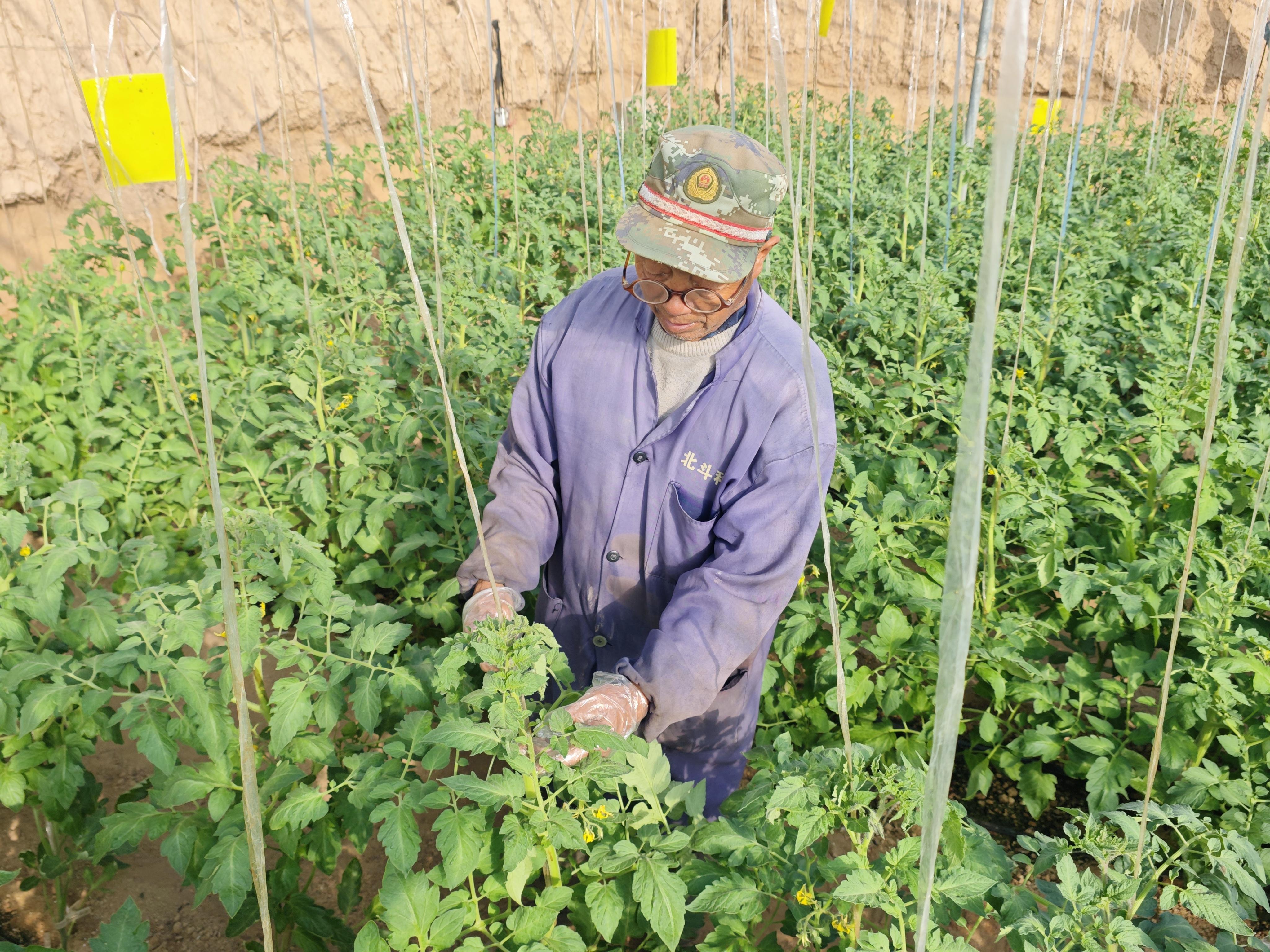 與此同時,在櫟陽街道義和村的番茄育苗基地里,工人們正忙著整枝、噴花,一派繁忙的景象。