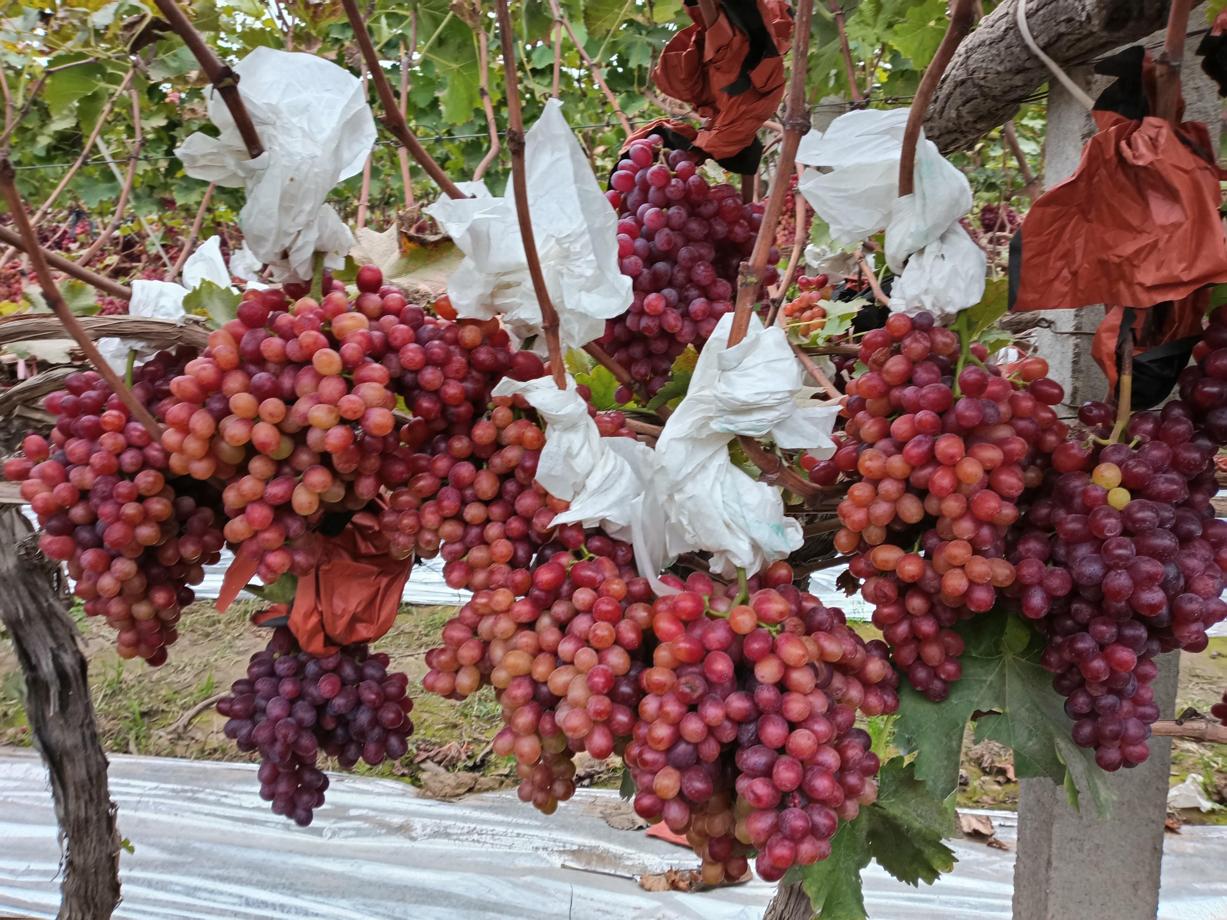同一天,在櫟陽街道卷子村的“冰美人葡萄”種植基地,果農(nóng)梁軍全正抓緊采摘最后一茬葡萄。