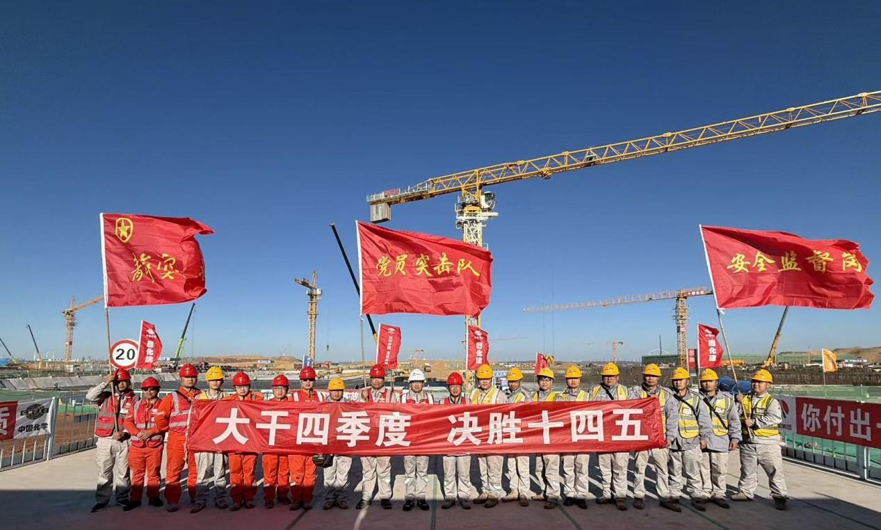 項(xiàng)目現(xiàn)場(chǎng)以黨建為引領(lǐng),黨員突擊隊(duì)、青年突擊隊(duì)與安全監(jiān)督崗三支隊(duì)伍協(xié)同作戰(zhàn),讓“黨建紅”深度融入“攻堅(jiān)熱”,凝聚起項(xiàng)目建設(shè)的強(qiáng)大合力。迎風(fēng)飄揚(yáng)的鮮紅隊(duì)旗,彰顯著參建團(tuán)隊(duì)的責(zé)任與擔(dān)當(dāng);各隊(duì)伍代表鄭重承諾,將以“時(shí)不我待、只爭(zhēng)朝夕”的緊迫感,堅(jiān)守“攻堅(jiān)克難、敢打必勝”的信念,嚴(yán)格落實(shí)施工攻堅(jiān)計(jì)劃,以硬核執(zhí)行力推動(dòng)工程高質(zhì)量建設(shè)。