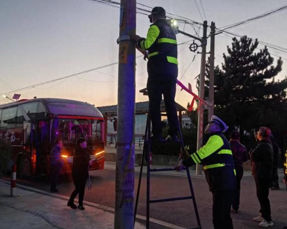 民警迅速分工,一邊安撫乘客,一邊展開(kāi)救援。他們?cè)谄碌纼啥藢?shí)施交通管控,并由警車(chē)引導(dǎo)大巴緩慢通行。途中遇到限高桿阻礙,交警立即拆卸欄桿,保障大巴順利通過(guò)。17時(shí)10分,被困車(chē)輛安全脫困。
