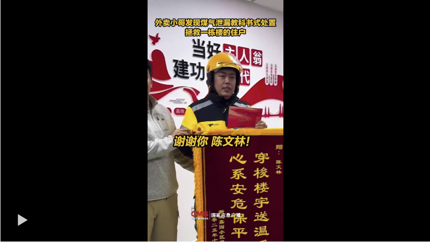 憑借警覺(jué)與責(zé)任心,他第一時(shí)間告知居民、通知物業(yè)保安,并指出了異味來(lái)源的大致樓層。