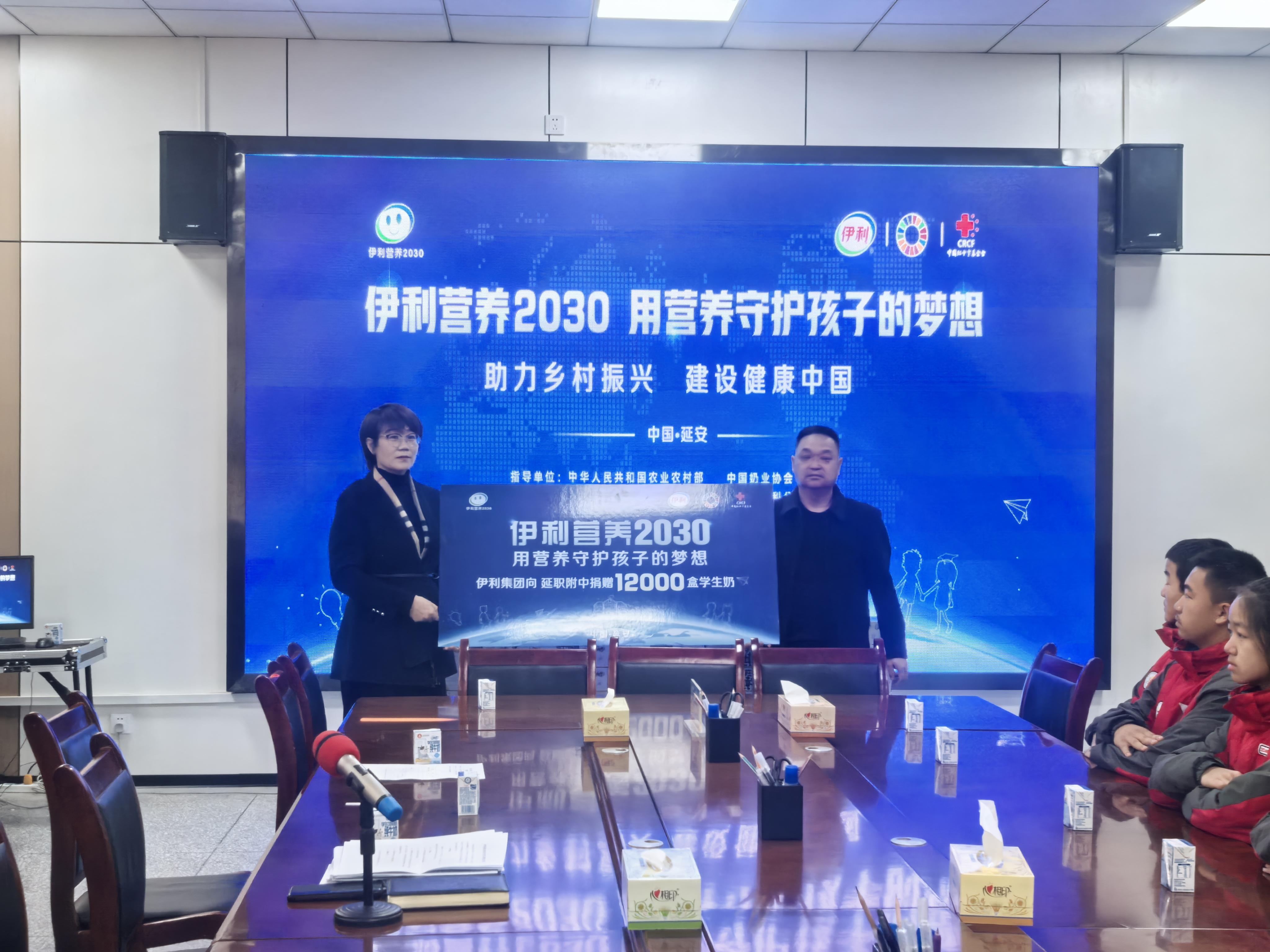 三秦都市報(bào)-三秦網(wǎng)訊(記者 唐明軍)11月28日,“伊利營(yíng)養(yǎng)2030”公益項(xiàng)目捐贈(zèng)活動(dòng)在延安市寶塔區(qū)延安職業(yè)技術(shù)學(xué)院附屬中學(xué)舉行,伊利集團(tuán)為延安市寶塔區(qū)捐贈(zèng)1.2萬(wàn)盒伊利學(xué)生奶。伊利集團(tuán)陜西分公司總經(jīng)理馬佳、延職附中高云校長(zhǎng)等領(lǐng)導(dǎo)和嘉賓共同見(jiàn)證了這一善舉。