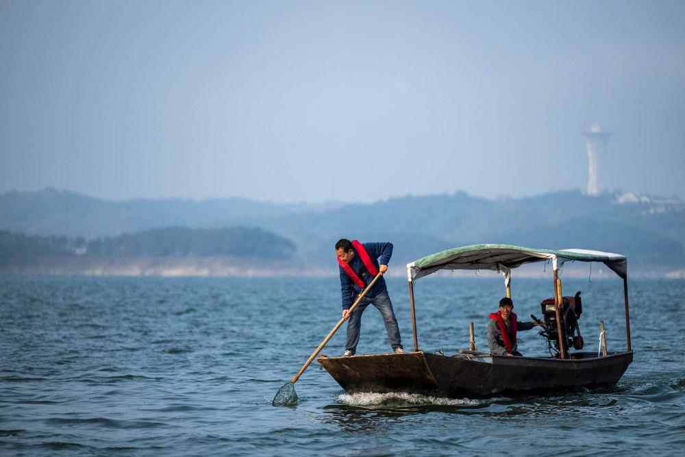 △2024年10月28日,湖北十堰丹江口清漂隊(duì)隊(duì)員在庫區(qū)進(jìn)行清漂作業(yè)。2023年,丹江口成立“小水滴”守水護(hù)水志愿服務(wù)隊(duì),越來越多人加入守水護(hù)水行列 。