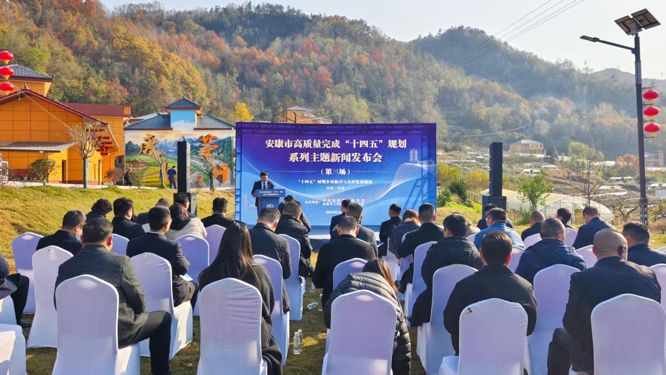 三秦都市報(bào)-秦聞?dòng)崳ㄓ浾?吳琛?。?/strong>12月1日,安康市高質(zhì)量完成“十四五”規(guī)劃系列主題新聞發(fā)布會(huì)(第三場(chǎng))在嵐皋縣城關(guān)鎮(zhèn)茅坪村舉行,安康市農(nóng)業(yè)農(nóng)村局、安康住房和城鄉(xiāng)建設(shè)局、安康市水利局相關(guān)負(fù)責(zé)人分別向大家介紹了安康市“十四五”時(shí)期鄉(xiāng)村振興與農(nóng)村發(fā)展成效,并組織媒體記者前往嵐皋縣城關(guān)鎮(zhèn)永豐村高峰逸境民宿集群、陜西硒寶科技有限公司、嵐皋縣明富魔芋生物科技開(kāi)發(fā)有限公司、嵐皋縣秦巴惠物流有限公司、嵐皋縣民主鎮(zhèn)田灣村苕糖小鎮(zhèn)和嵐皋縣民主鎮(zhèn)棗樹(shù)村觀摩采訪。