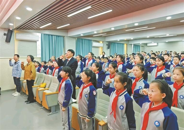 11月6日,西安市關工委法治報告團走進西安理工大學附屬小學。圖為報告團老師帶領學生宣誓(資料照片)。