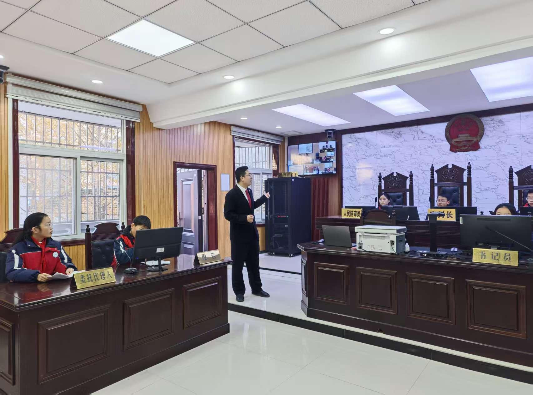 隨后,在法庭庭長、“天平護航”宣講員李香濤的引導(dǎo)下,開展了一次生動的模擬庭審。同學們按照審判員、原告、被告、書記員等崗位分配扮演角色。法庭調(diào)查時,思路清晰、準確歸納焦點;法庭辯論階段,據(jù)理力爭、審慎辯白;總結(jié)陳述階段,全情投入、嚴肅認真。在模擬庭審結(jié)束后,李香濤進行了點評,對同學們的表現(xiàn)積極鼓勵贊許,也耐心指出了小疏漏,讓同學們在實踐與糾錯中加深了對審判工作的理解。