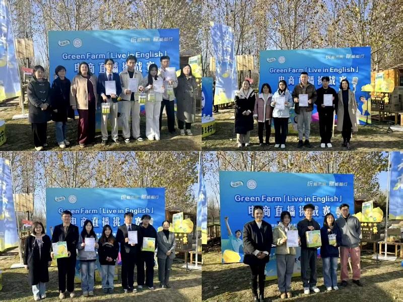 本次大賽評委團由學院師生及企業(yè)嘉賓組成,從語言表達、直播技巧、產(chǎn)品呈現(xiàn)等維度進行專業(yè)評審。經(jīng)過3小時的激烈角逐,最終評選出特等獎1名、一等獎2名、二等獎3名、三等獎4名。其中,劉軒里江團隊以專業(yè)的英語表達、精湛的銷售技巧和新穎的直播內(nèi)容脫穎而出,斬獲特等獎。馮嘉文、劉岳勤等老師及企業(yè)嘉賓為獲獎隊伍頒發(fā)榮譽證書。