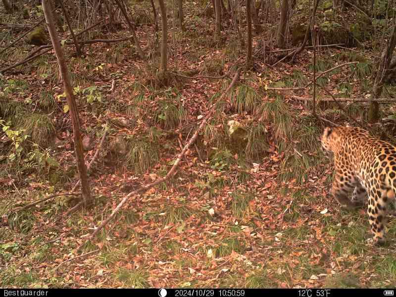 2024年10月29日,西安市鄠邑區(qū)太平國(guó)有生態(tài)林場(chǎng)東西山管護(hù)站的紅外相機(jī)拍攝到一只國(guó)家一級(jí)保護(hù)動(dòng)物——金錢豹,這是自布設(shè)相機(jī)以來(lái)首次發(fā)現(xiàn)金錢豹的蹤跡。林場(chǎng)內(nèi)先后拍攝到國(guó)家一級(jí)保護(hù)動(dòng)物羚牛、金絲猴、林麝和斑尾榛雞,國(guó)家二級(jí)保護(hù)動(dòng)物紅腹角雉、黃喉貂、豹貓、黑熊等160多條有效視頻和照片。太平國(guó)有生態(tài)林場(chǎng)供圖