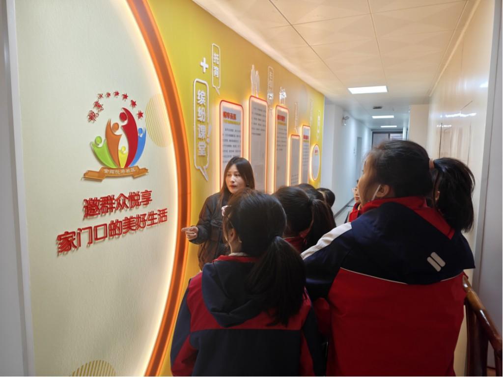 活動伊始,社區(qū)工作人員化身“社區(qū)導(dǎo)覽員”,帶領(lǐng)孩子們依次參觀黨群服務(wù)中心、手工達(dá)人室、兒童之家等功能空間。圍繞“悅享+”社區(qū)品牌,工作人員用生動易懂的語言,講述社區(qū)如何服務(wù)居民、營造“悅享生活、奔赴未來”的幸福家園。孩子們邊聽邊問,興趣盎然,在沉浸式體驗中感受社區(qū)溫度,也對“奉獻(xiàn)、友愛、互助、進(jìn)步”的志愿精神有了更直觀的理解。