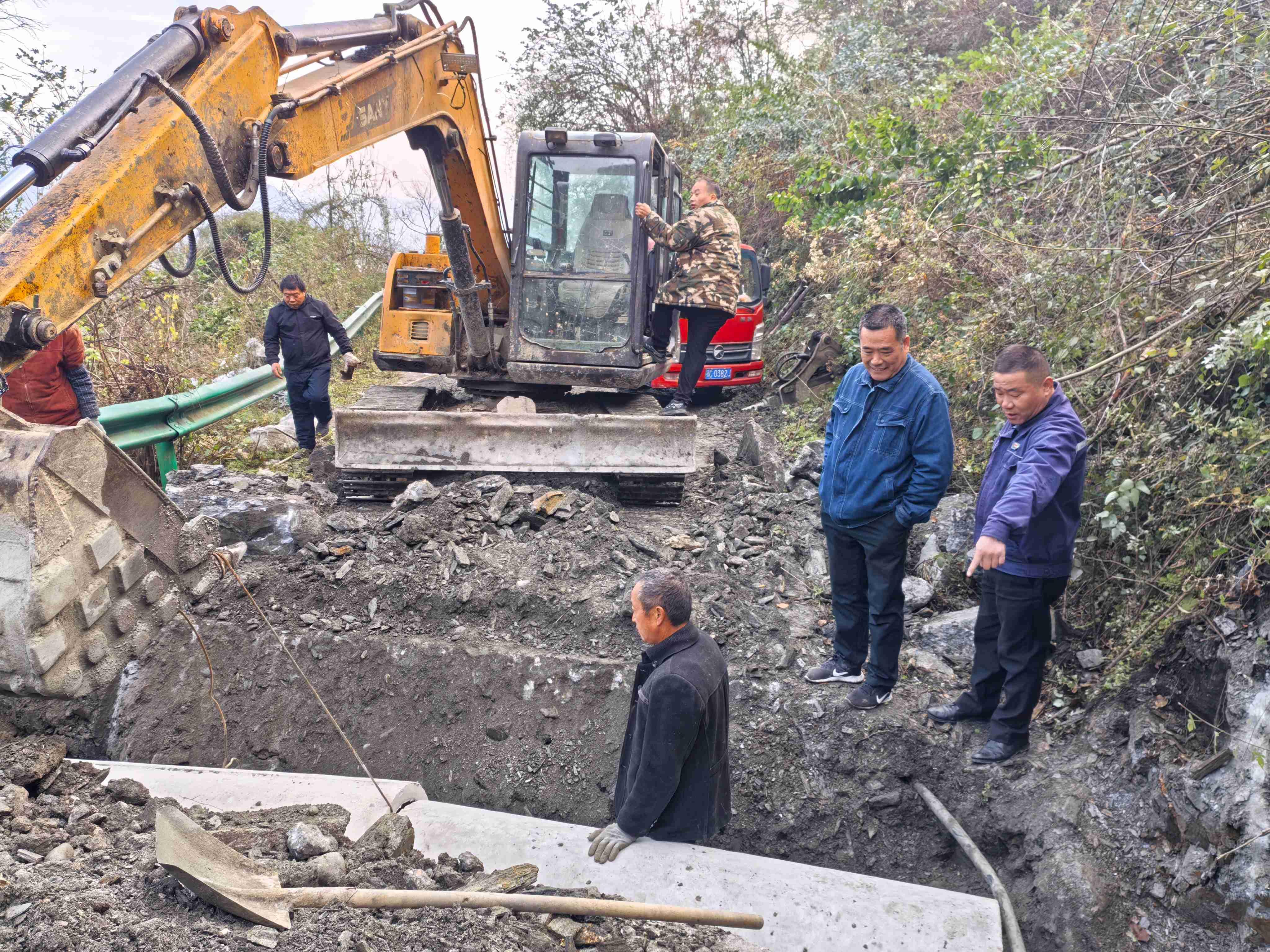 此次涵洞建設項目涉及蘭灘社區(qū)三、四組兩處工作點,全長12米,均處于40°以上陡坡路段,施工難度極大。為確保施工安全順利進行,駐村工作隊成立專班,全程現(xiàn)場監(jiān)督。