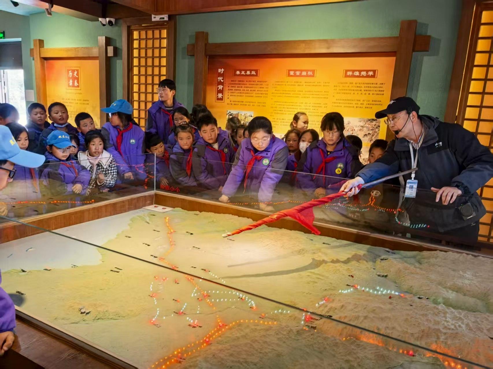 活動(dòng)當(dāng)天,學(xué)生們身著統(tǒng)一校服、佩戴紅領(lǐng)巾,有序進(jìn)入館內(nèi)。在博物館講解員的引導(dǎo)下,學(xué)生們循著歷史足跡,有序參觀了遺址陳列館、場景復(fù)原區(qū)等區(qū)域,系統(tǒng)了解了“鴻門宴”這一著名歷史事件的時(shí)代背景、關(guān)鍵人物與歷史影響,那些波瀾壯闊的歷史場景通過實(shí)物、圖文與講解立體呈現(xiàn),讓原本抽象的歷史知識(shí)變得鮮活可感。