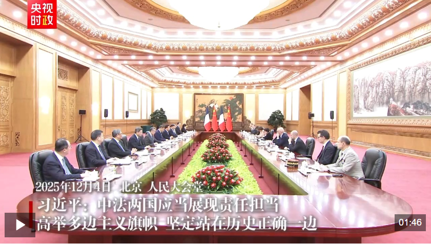 習(xí)近平主席在4日的會談中提出殷殷期許:當(dāng)前,百年變局加速演進(jìn),人類又一次站在何去何從的十字路口。中法兩國應(yīng)當(dāng)展現(xiàn)責(zé)任擔(dān)當(dāng),高舉多邊主義旗幟,堅定站在歷史正確一邊。