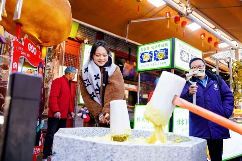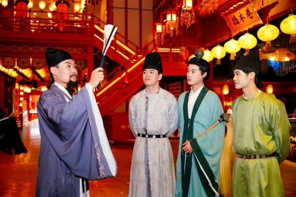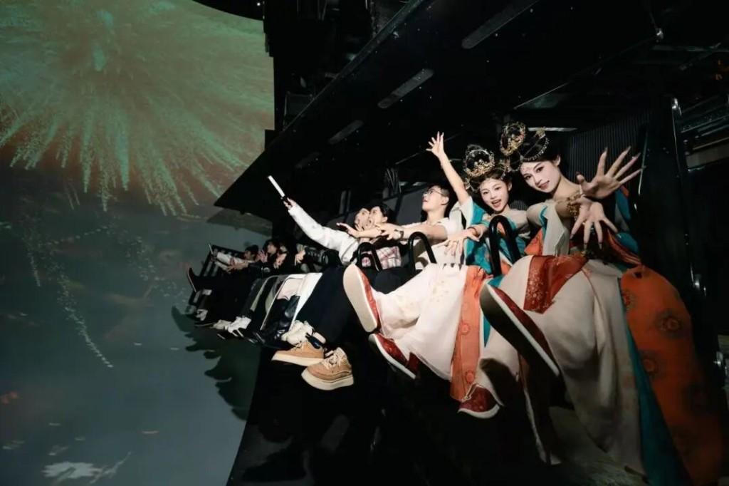 產(chǎn)業(yè)發(fā)展上,“唐詩+文旅”模式釋放強(qiáng)大動能。曲江飛行劇院《長安之上》《中國之上》180度球幕投影、全息影像、多聲道環(huán)繞音效及動感座椅等多元技術(shù),讓游客“穿越”古今長安;永興坊內(nèi),“胡麻餅樣學(xué)京都”的詩意與非遺美食相融,摔碗酒呼應(yīng)“人生得意須盡歡”的詩情。