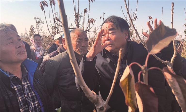 11月20日,劉英俊(右一)為種植戶講解櫻桃種植技術(shù)(資料照片)。