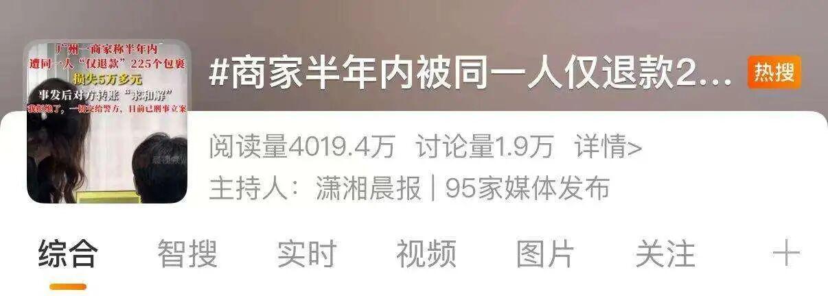 話題#商家半年內(nèi)被同一人僅退款225個(gè)快遞#