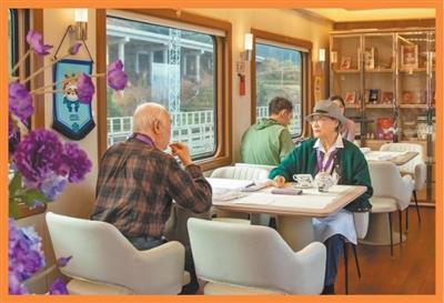 老年游客乘坐“星光·瀾湄號”銀發(fā)旅游主題專列出游。