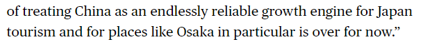 文章還援引華凱營(yíng)銷(China Trading Desk)首席執(zhí)行官兼創(chuàng)始人蘇布拉馬尼亞·巴特(Subramania Bhatt)的話:“對(duì)日本旅游業(yè)、尤其是大阪等地來(lái)說(shuō),把中國(guó)視為一個(gè)持續(xù)可靠增長(zhǎng)引擎的時(shí)代已經(jīng)結(jié)束了?!?/p>